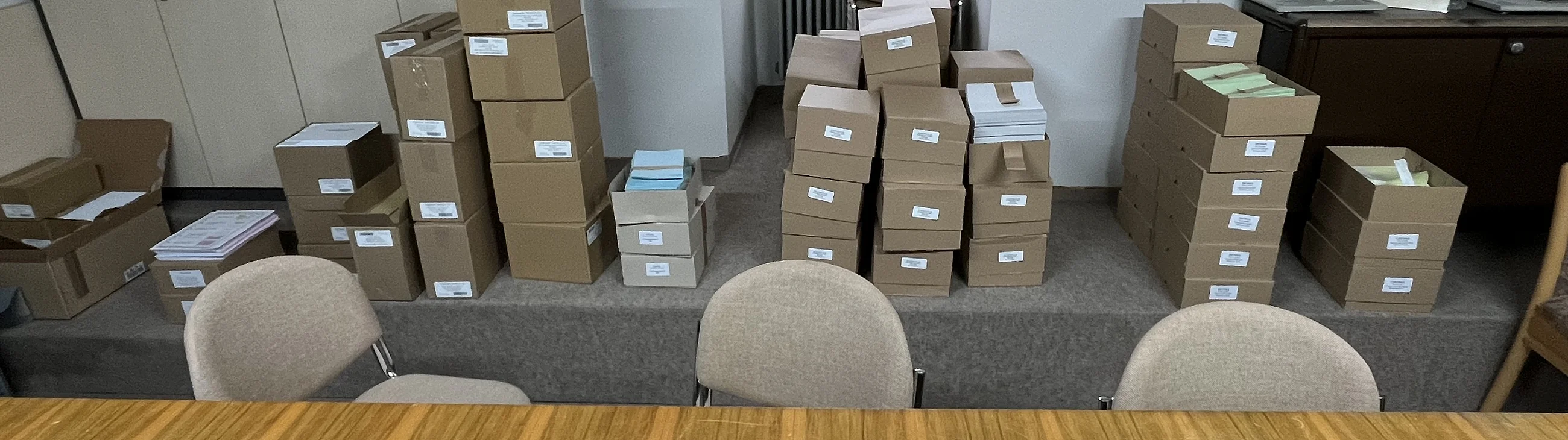 Nachdem die gemeindlichen Stimmzettel für die anstehende Wahl am 08. März 2026 eingetroffen sind, haben die Mitarbeiterinnen und Mitarbeiter der Verwaltung umgehend mit dem Verpacken der bereits beantragten Briefwahlunterlagen begonnen.
