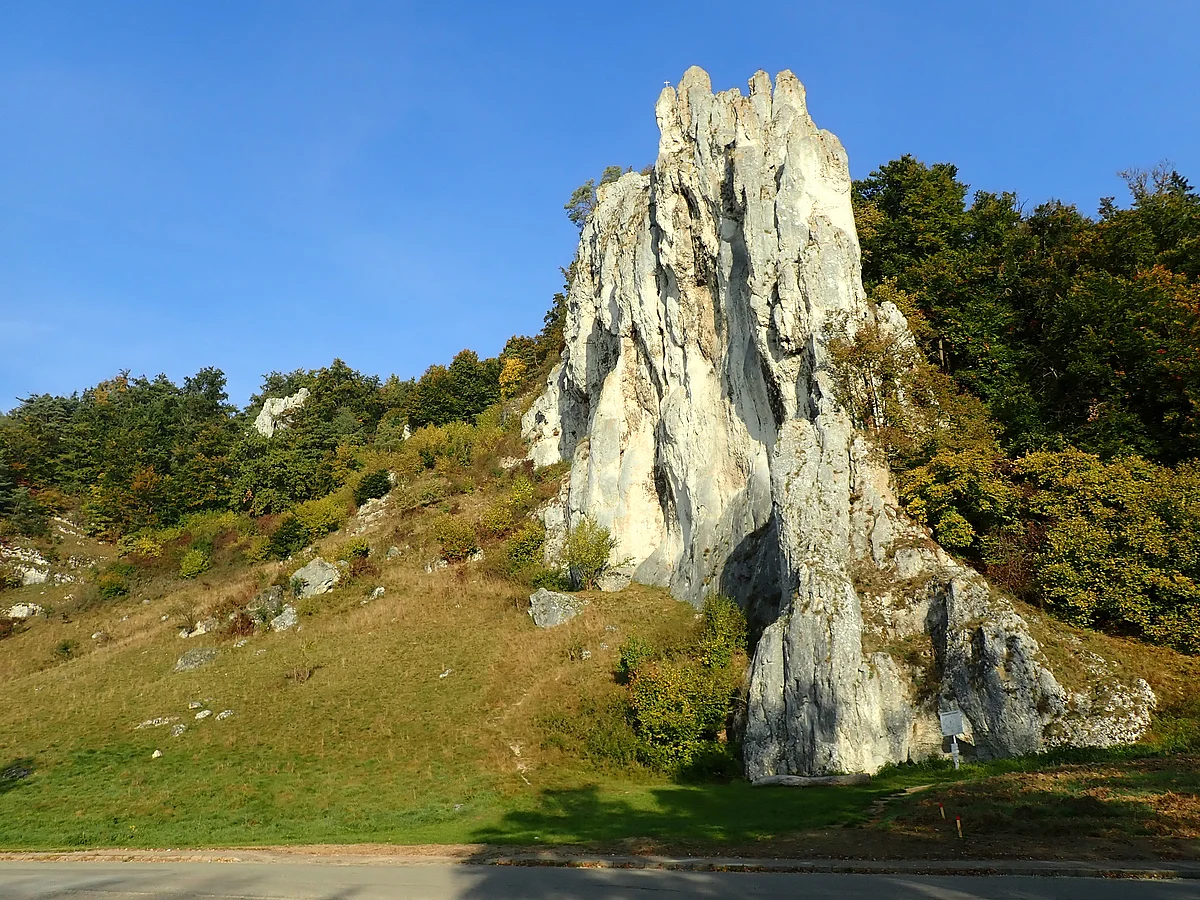 Der Felsen wurde von beiden Seiten von der Urdonau angenagt und er ragt deshalb fast wie ein Schiffsbug in das Tal. Beim Klettern fallen immer wieder fossile Schwämme und Schalenbruchstücke auf, der Ursprung ist uns mittlerweile bekannt.